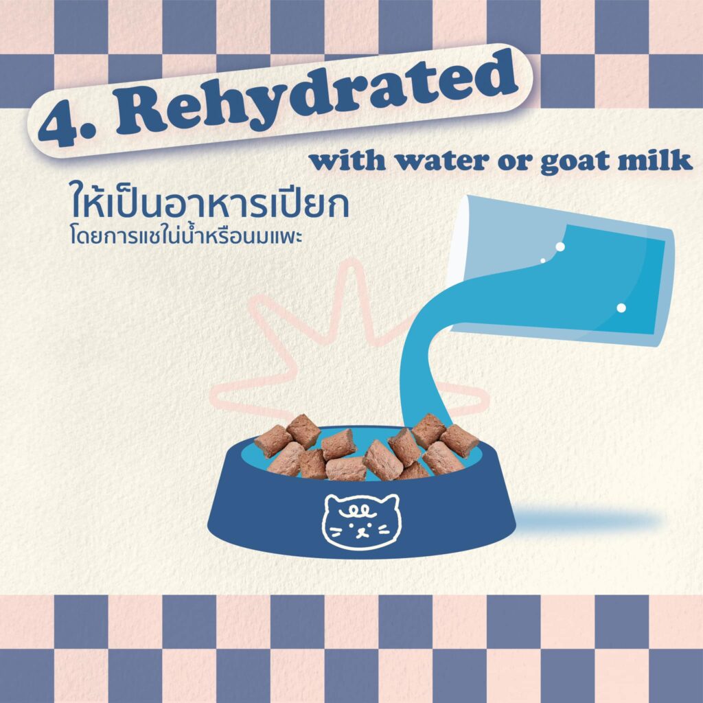 - ผสมกับนมแพะสำหรับแมวเพื่อสร้างมื้อพิเศษที่อร่อยและมีโภชนาการสูง